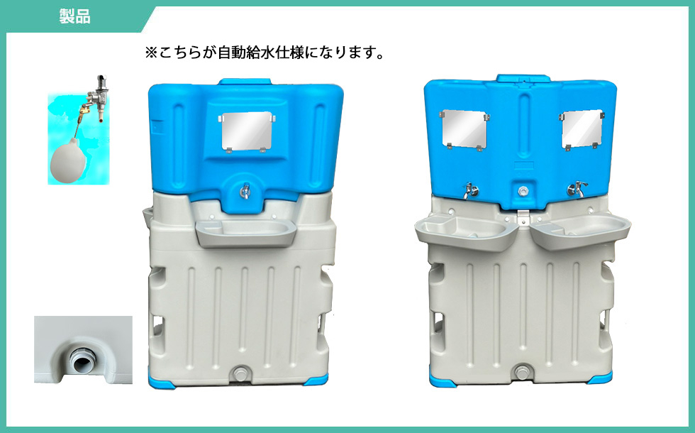 その他イベント製品|PE手洗いユニット HOME 製品案内 その他イベント製品 PE手洗いユニット自動給水L10N PE手洗いユニット自動給水L10N 給水工事 排水工事 水補給 レンタル 不要 必要 不要 Rental OK! 1台で最大3名まで同時に使用でき、混雑が予想される場所などには最適です。 給水設備が可能なら自動給水タイプは水の補給不要で会場のメンテナンスも容易です。スタッフの作業軽減にも役立ちます。給水口横からボールタップへ水道を引きます。 図面ダウンロード(PDF) 製品一覧に戻る オンラインで購入する レンタルの見積依頼をする 資料請求はこちら